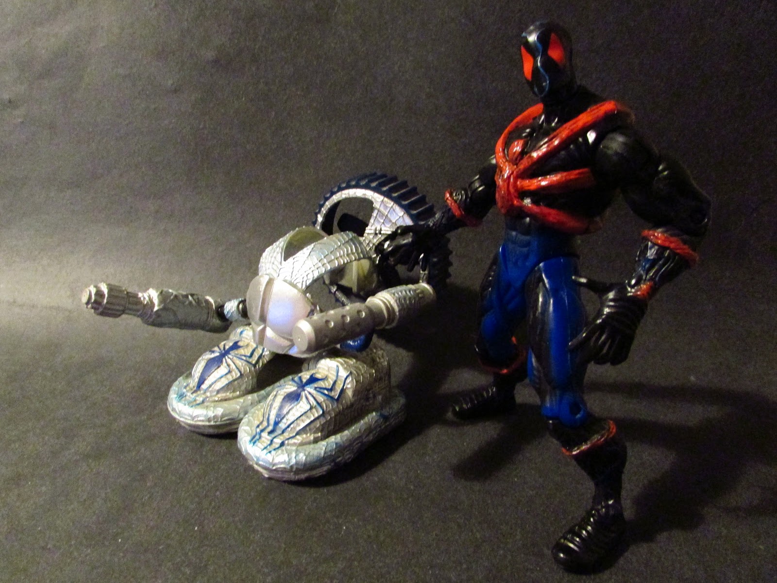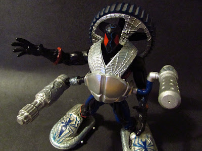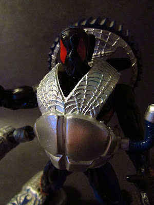 A figura vem ainda com uma armadura constituída por botas flutuantes, e uma armadura de peito com canhões e uma ventoinha nas costas possivelmente para poder dar ao herói um meio de locomoção rápido e eficaz nos pântanos onde não existem árvores para poder lançar as suas teias.