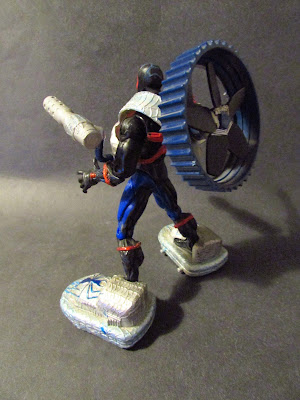 Esta armadura pode ser retirada da figura e montada de modo diferente transformando-se uma espécie de veículo robô de auxilio. Um water blaster!