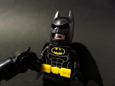 Como tinha referido, Batman vem com a sua Pistola Gancho, que usa muito na história que vem na revista e que lhe dá o estilo cómico do filme.