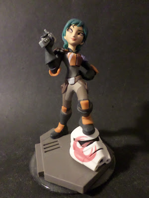 Esta é uma figura Disney Infinity de Sabine. Como já tinha mencionado anteriormente, estas figuras de PVC são como que pequenas estátuas espectaculares de figuras famosas da Disney. No caso de Star Wars mesmo muito procuradas por coleccionadores.