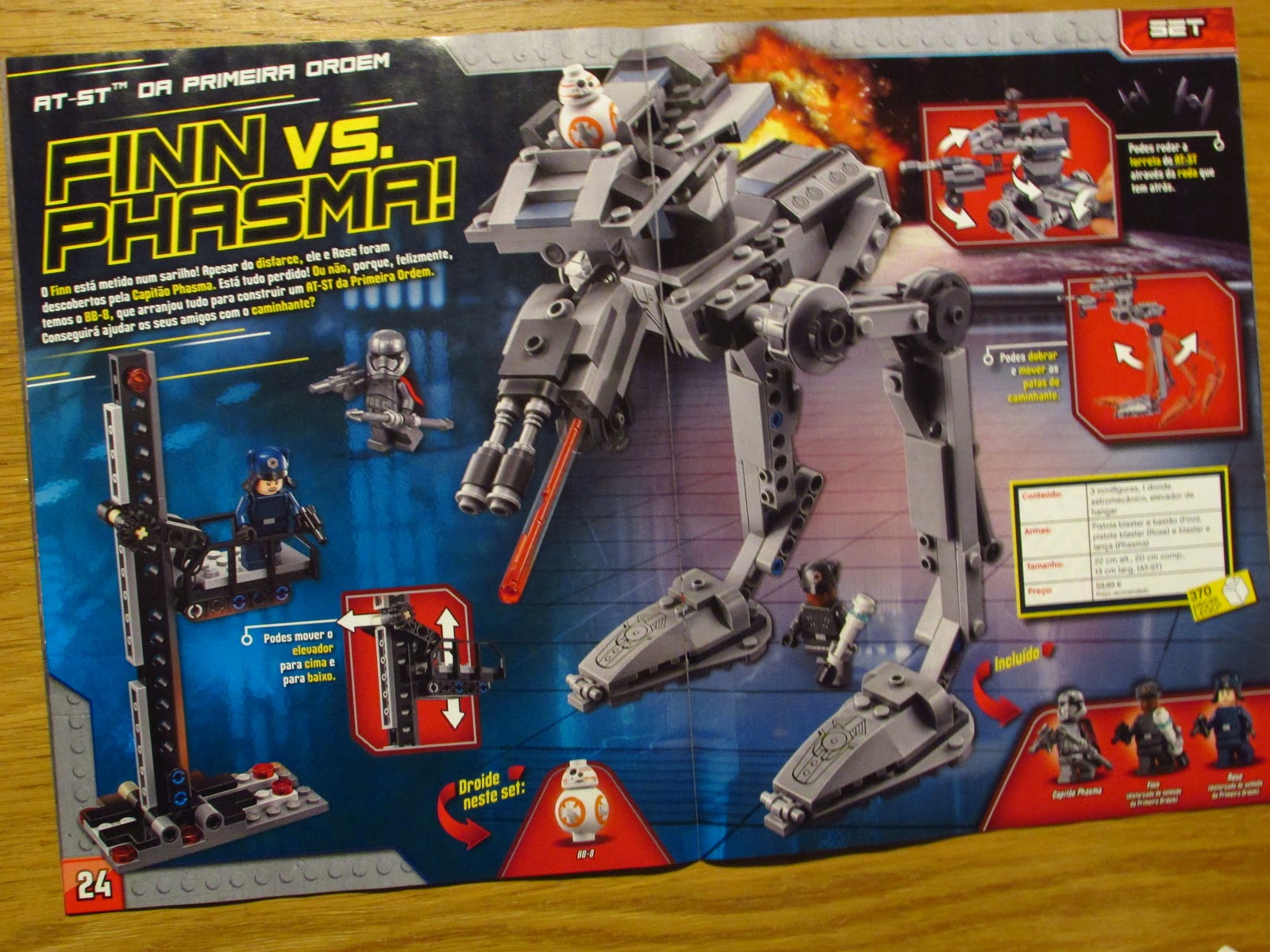 O poster duplo está lá novamente assim como os jogos, passatempos e mais uma visão do conjunto Lego, Finn vs Phasma.