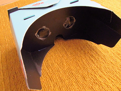 Os Óculos são em cartão e têm de ser montados de acordo com as instruções anexas ao pacote onde vêm. Como não tenho um desses modernos Smartphones não consigo mostrar aqui o efeito virtual e penso até que não seria possível fotografar tal coisa de modo a poder mostrar. No entanto e agregado a esta bónus vem uma aplicação para tablets e telemóveis que dão uma pequena ideia de como pode ser essa experiência...é só procurar na App Store.