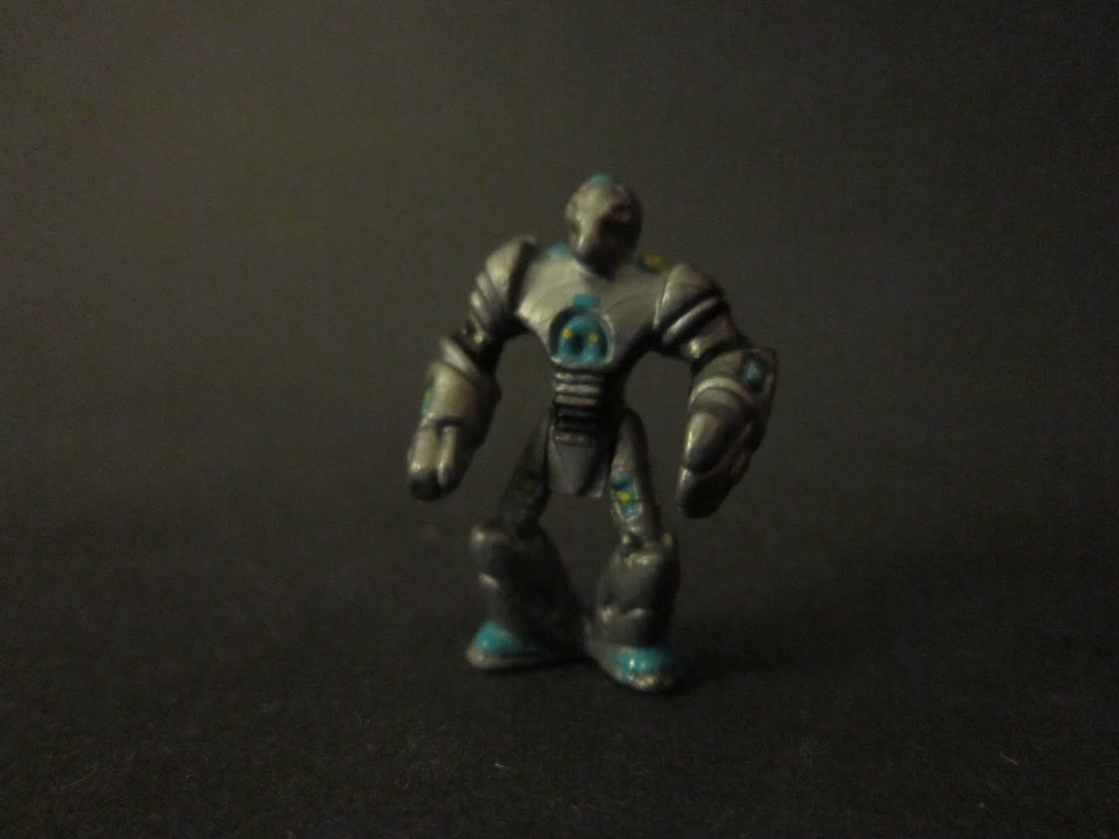 Uma cabeça de robô com un estranho extra terrestre de fato espacial e um monstro cibertrónico é o que podemos encontrar no interior deste mini playset.