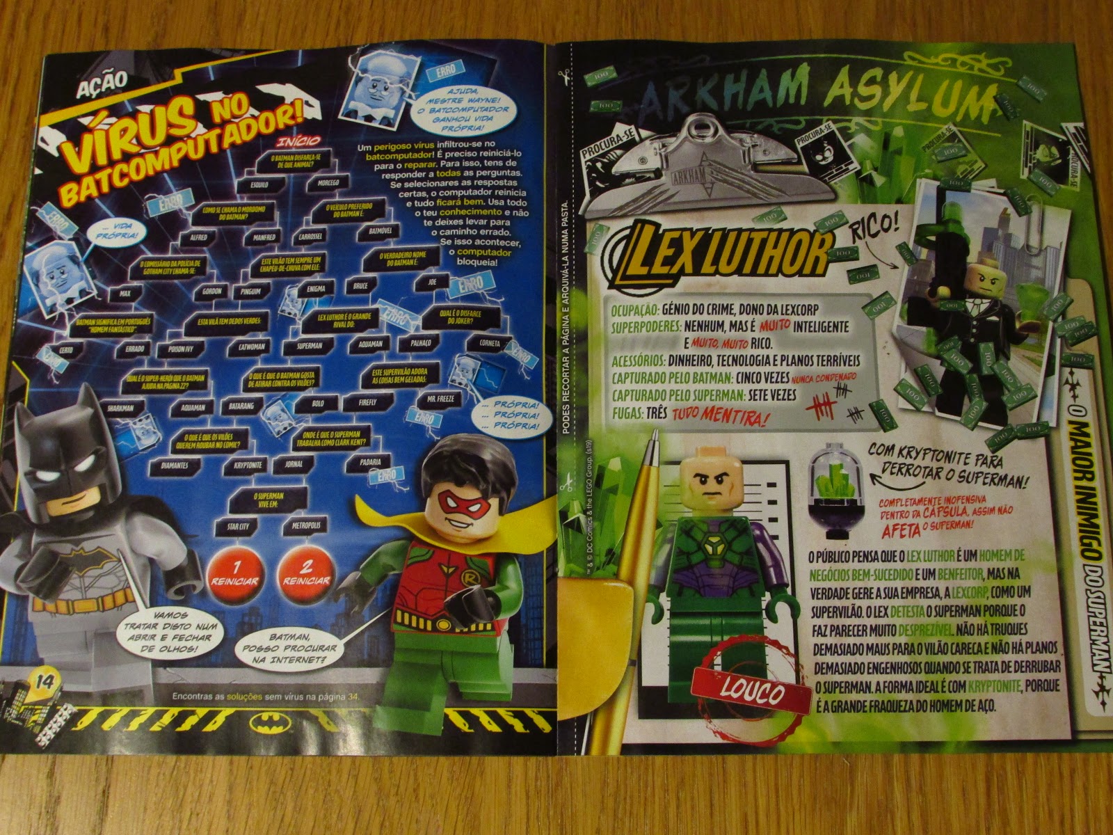 A revista é também um grande conjunto de desafios, labirintos e diversos jogos. Vem com um poster duplo espectacular, ficheiros secretos e análises a conjuntos Lego DC.