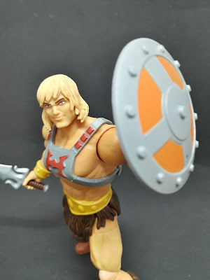 He-Man vem com a Power Sword, com um escudo e com um par de mãos alternativo, que pode ser trocado conforme o gosto do coleccionador.