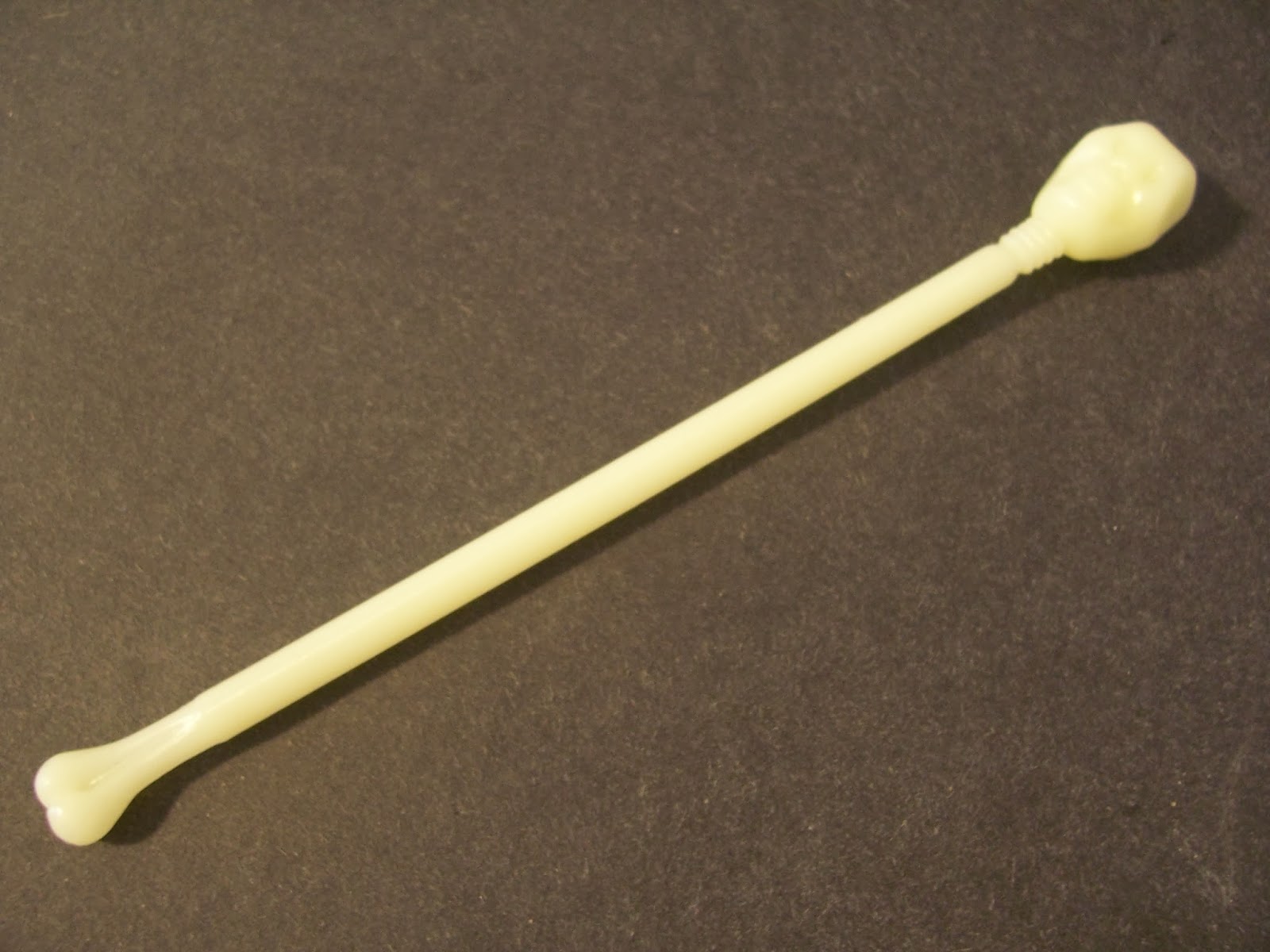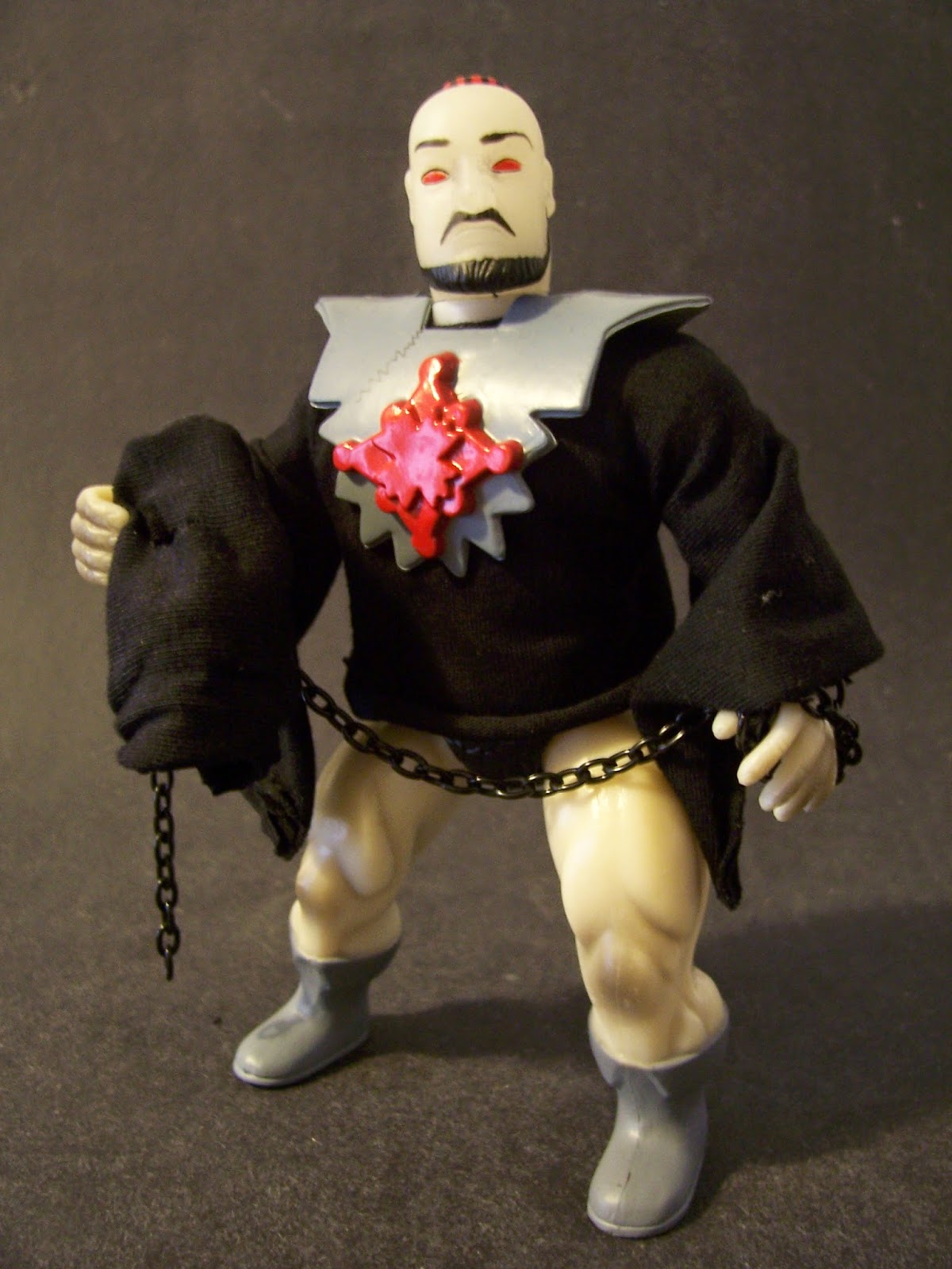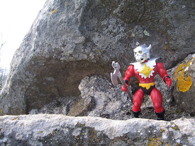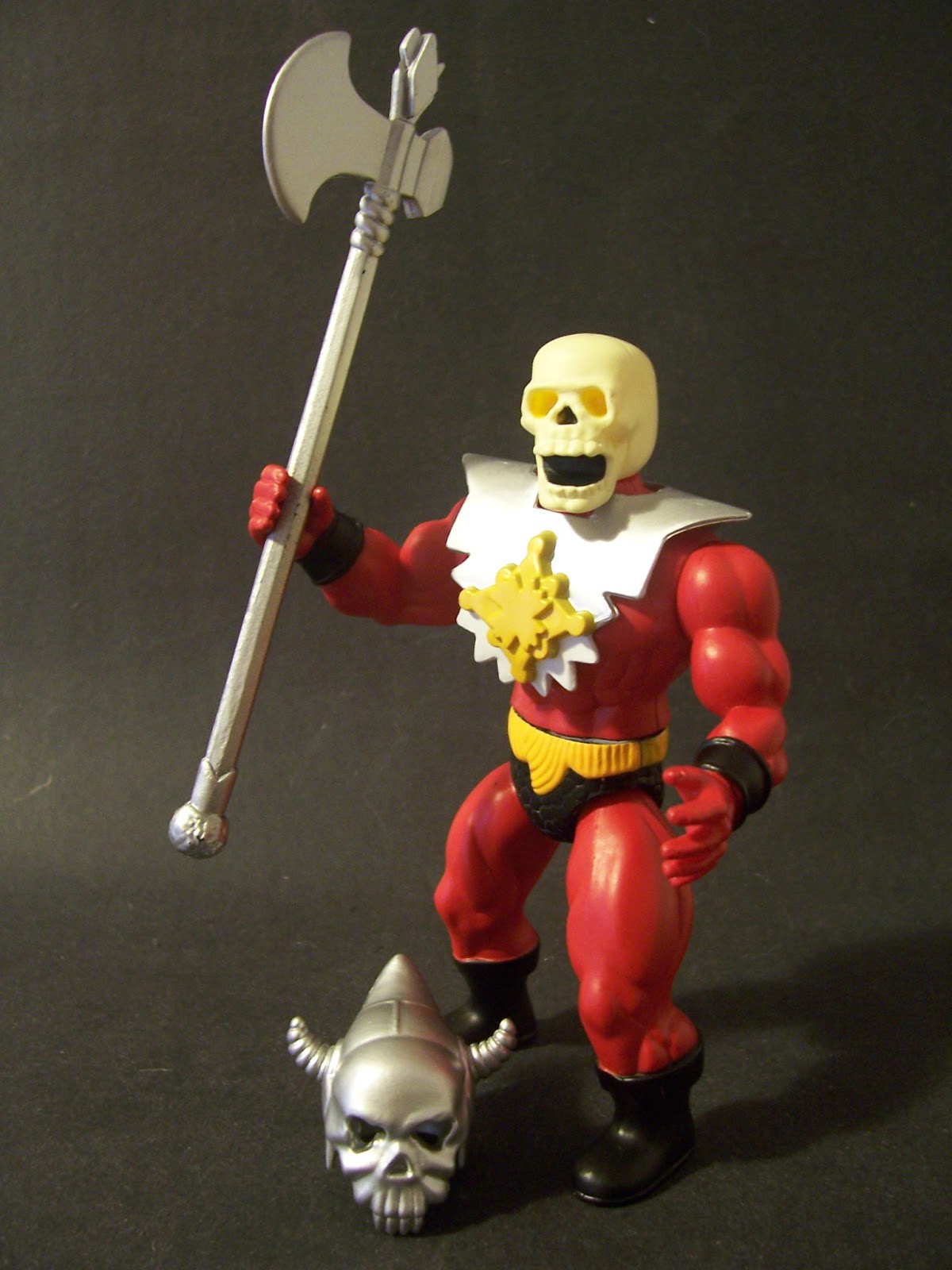 A sua arma, o lendário Staff of Pain é feito também de material que brilha no escuro e pode ser usado por qualquer uma das figuras da linha.